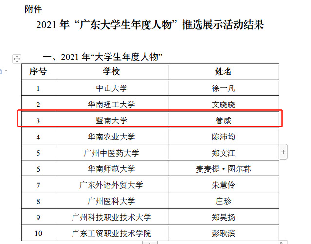 在本次评选活动中,全省共选出2021年“广东大学生年度人物”10名、提名奖20名、入围奖70名。