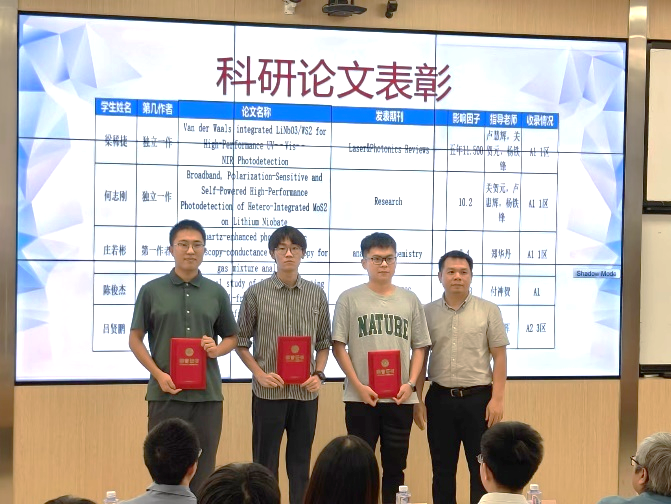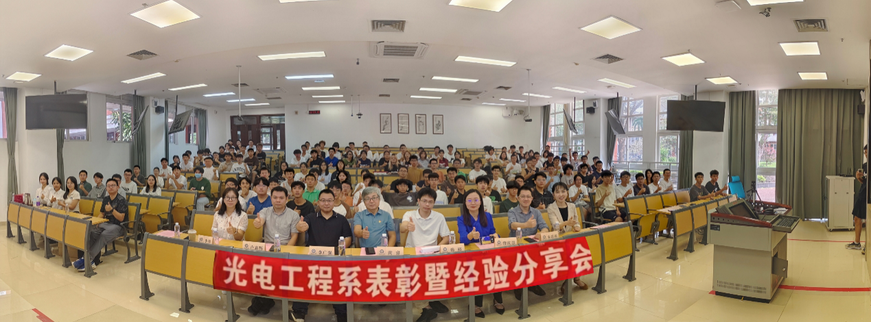 11月6日,包子漫画 光电工程系2022-2023学年表彰大会在富力教学楼124课室召开。本次大会为荣获国家级和省部级等各类奖项、荣誉称号,以及在科研论文发表等方面表现突出的学生代表们颁奖。学院党委书记黄睿、广东九安智能科技股份有限公司智能嵌入式开发经理李广强校友及无线技术经理韩裕校友、光电工程系主任卢惠辉、党总支书记曾庆慧、副系主任朱思祁、辅导员李仕萍、马悦及全体2023级新生参加大会。会议由马悦主持,广东九安智能科技股份有限公司提供赞助。