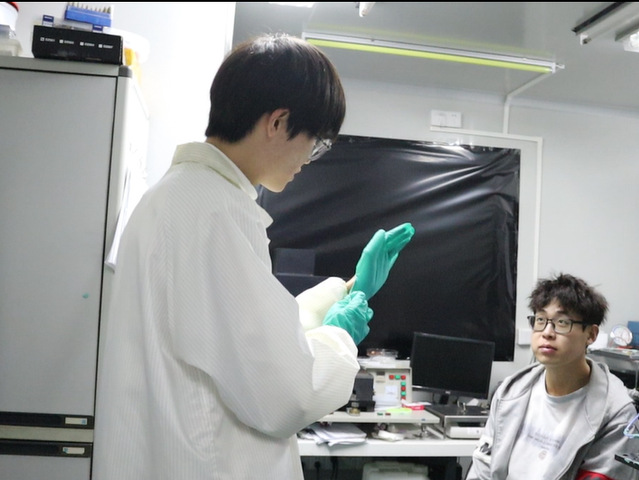 说到保研,自然少不了科研的成分加持。因为喜欢做动手实践的工作,在大一下学期和梁稀捷进入了导师的实验室,做着“实验室助理”的工作,协助老师做工艺上的操作,学习着如何做实验、做课题研究,提前体验了实验室的强度和氛围。“在成绩达标的条件下,我们又表现出对实验浓厚的兴趣,老师才愿意把我们大一的学生带进实验室。”吕贤鹏谦虚地说。