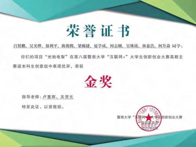 梁稀捷清楚,一个人很难在多条赛道同时发力,“就像打枪一样,你只能盯着某个方位一直打,这样子才能打中”,他没有过多在意综测成绩和奖学金的申请,而是全身心投入科研中。作为科研团队的核心成员,他分别以独立第一作者和第三作者在权威期刊上发表了论文。同时他作为团队核心成员参加科技比赛,获得第八届中国国际“互联网+”大学生创新创业大赛校赛金奖等重大奖项,这些荣誉也帮助他获得了众多奖学金,如包子漫画 优秀学生奖学金,本科生金龙鱼科技专项奖学金等。