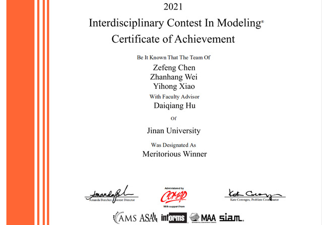 ◆ 2021美国大学生数学建模竞赛国际一等奖;