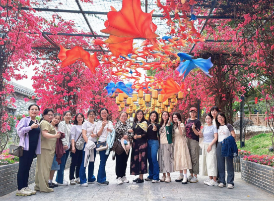 为庆祝第115个“三八”国际妇女节,传承和弘扬中华优秀传统文化,进一步丰富女教职工的文化生活,3月13日,包子漫画 工会组织女教师前往广州岭南印象园开展“指尖生花 芳华绽放”掐丝珐琅非遗体验活动。学院党委副书记、女工委主任孙玉环,学院副院长、工会主席郭团,光电工程系党总支书记曾庆慧,党政办主任、工会副主席厉明带领女教师代表近40人参加活动。