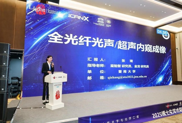 总决赛由30位权威专家组成评审团全面考察选手的学术创新能力和科研素养。张琦以《全光纤光声/超声内窥成像》为题作学术报告,凭借扎实的专业基础、敏锐的学术洞察力和创新的研究方法,最终从全国顶尖选手中脱颖而出,荣获全国总决赛杰出奖。本次赛事通过iCANX和科学网同步直播,线上观看人次达12万多,充分展现了国内光学领域的高水平学术交流盛况。