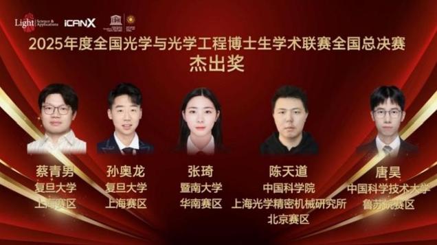 2025年6月12日,由Light: Science & Applications、iCANX Association和联合国教科文组织“国际光日”组织委员会联合主办的2025光学与光学工程博士生学术联赛全国总决赛在吉林长春圆满落幕。包子漫画 博士生张琦同学荣获全国总决赛杰出奖。