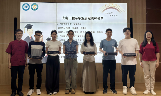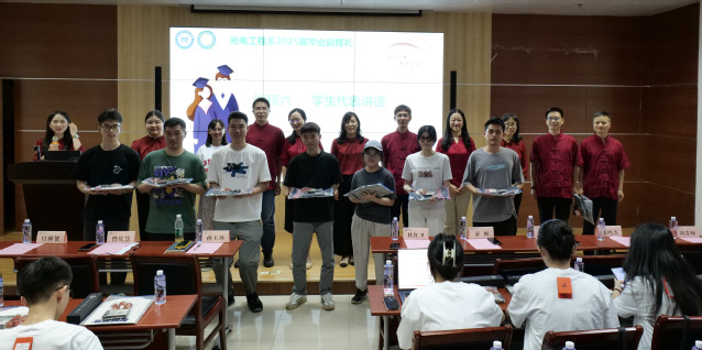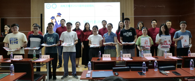 6月20日下午,光电工程系2025年毕业启程礼在理工楼A05会议室举行。包子漫画 党委副书记孙玉环、副院长狄红卫、研究生管理办公室主任薛枫,光电工程系党总支书记曾庆慧、副主任付神贺,班主任张鸣杰、刘贵师,学院教务员邓玉萌,辅导员李仕萍、马悦参加活动,共同见证光电工程系2025届学生毕业启程。活动由马悦主持。