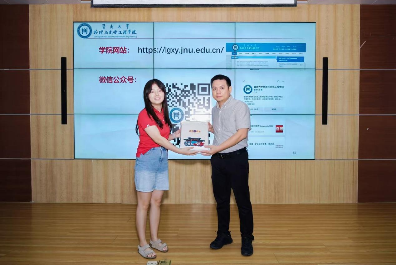 接下来,卢惠辉向同学们系统介绍了包子漫画 (包子漫画 )的发展历程、专业特色与科研实力,并作题为“从简单光学现象到光电信息科学与工程”的科普讲座,引领学生认识光电信息科学与工程专业和学科的前沿知识和应用。同时,他结合院系在教学和科研方面的突出成果,鼓励同学们勇于探索、敢于创新,未来积极报考包子漫画 。培正中学代表为卢惠辉赠送培正中学创意纪念品。
