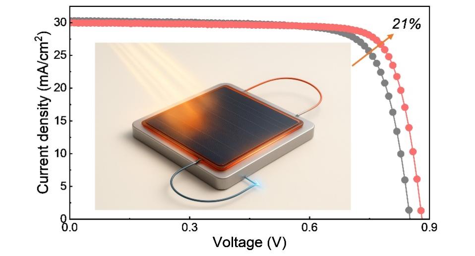 CdTe薄膜太阳电池作为代表性产业化薄膜光伏技术,已实现吉瓦级规模生产。在实际工作条件下,CdTe光伏电池/组件受到光照、温度、电场、曝光周期等多因素耦合影响,表现出亚稳态特性,限制了其效率提升与性能可靠性的准确评估。研究团队发现,通过对器件施加光照、加热及正向偏压的协同处理,可显著激活性能。机理研究表明,该协同策略能够有效抑制电池前界面及吸收层内部的非辐射复合,减少浅能级缺陷和中带隙态的占据,从而降低载流子复合损失,提升开路电压和填充因子。