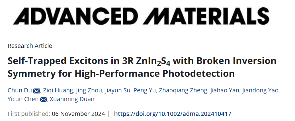 杜纯/段宣明教授团队在Advanced Materials发表 二维光电探测器件重要研究成果
