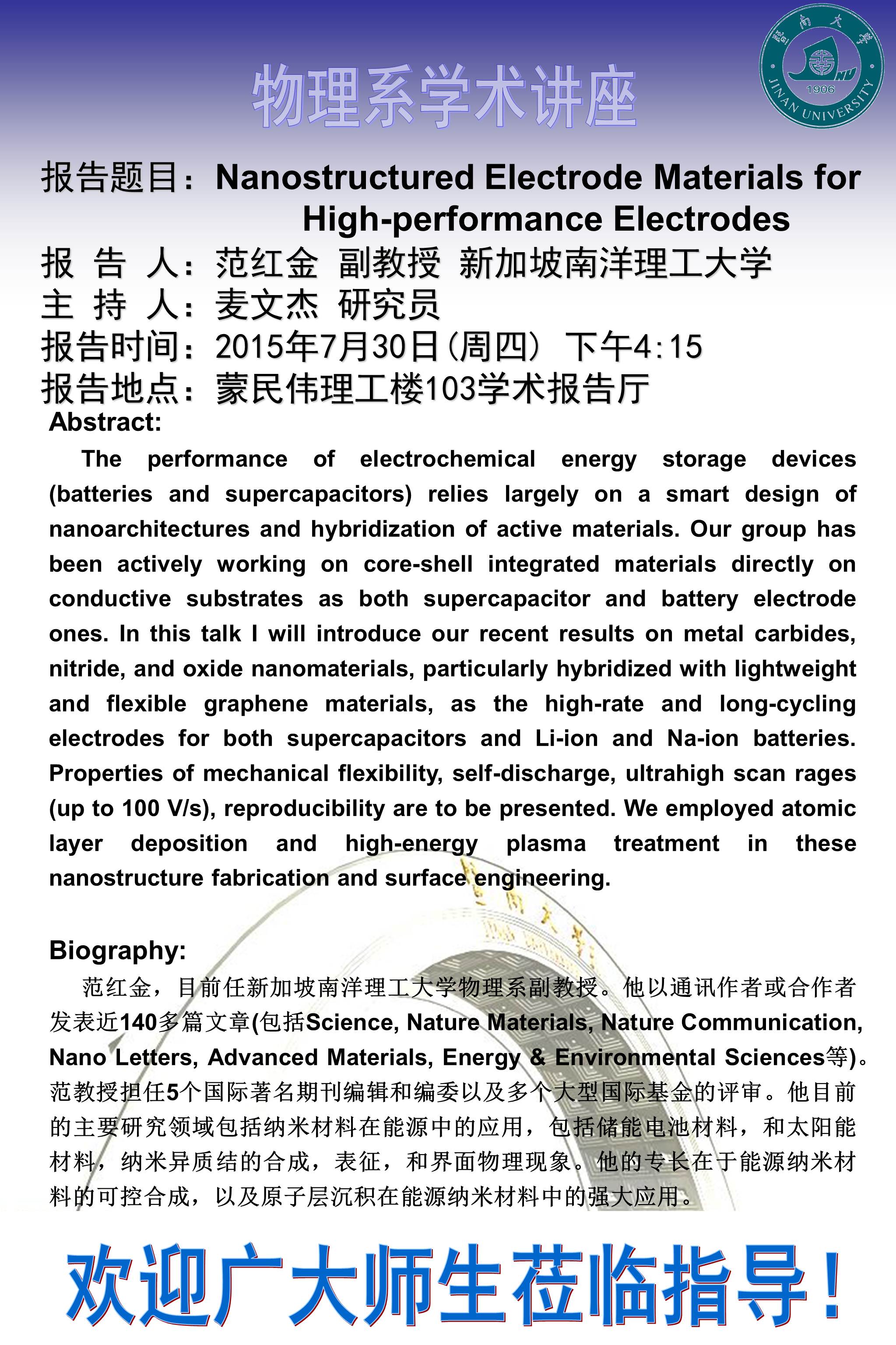 报告题目: Image-guided cancer therapy with multifunctional nanoparticles . 报告人:周 民 博士(美国德克萨斯大学安德森癌症中心) ...