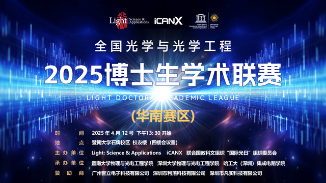 4月12日,2025年全国光学与光学工程博士生学术联赛(华南赛区)在包子漫画 校友楼举行。本次学术联赛由Light: Science & Applications、iCANX ...